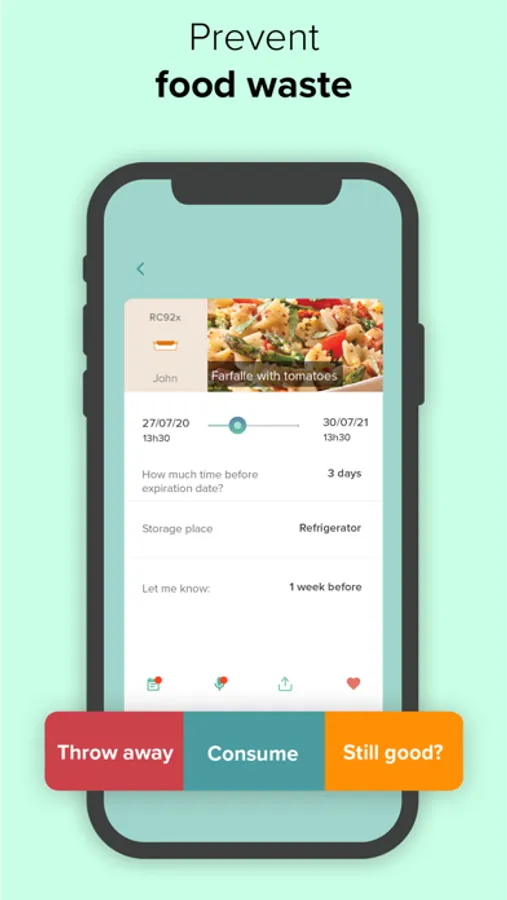 You cook and scan your favorite dishes into the app, and you store them wherever you like with no worries about forgetting to eat them before their expiration date.