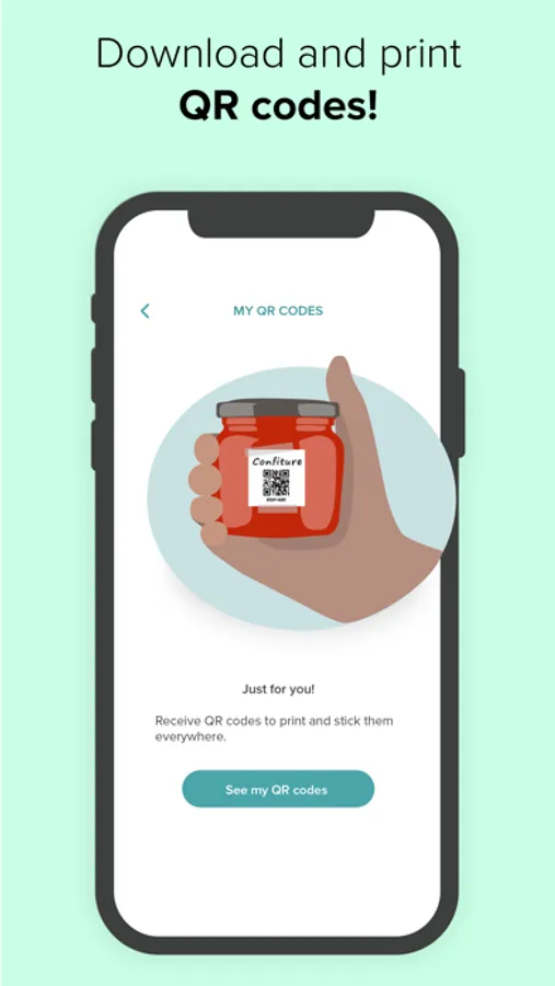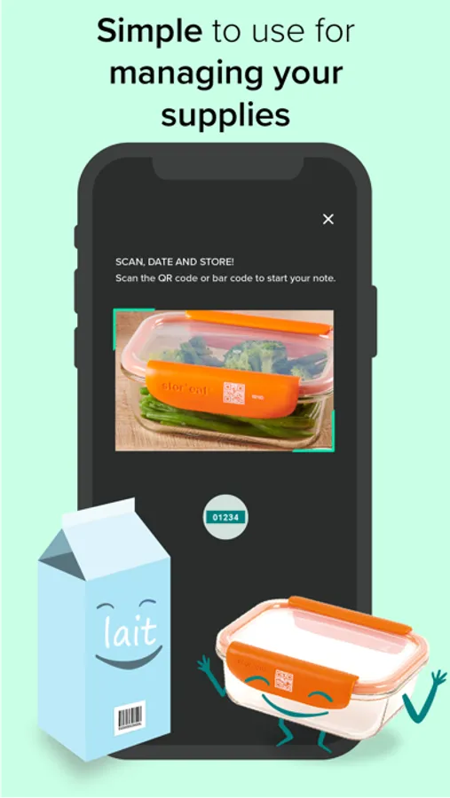 Scan all the QR codes on the products in the Stor’eat range to optimize your storage and better control your supplies, remember expiration dates, and find your food quickly in your fridge, freezer or cupboard…