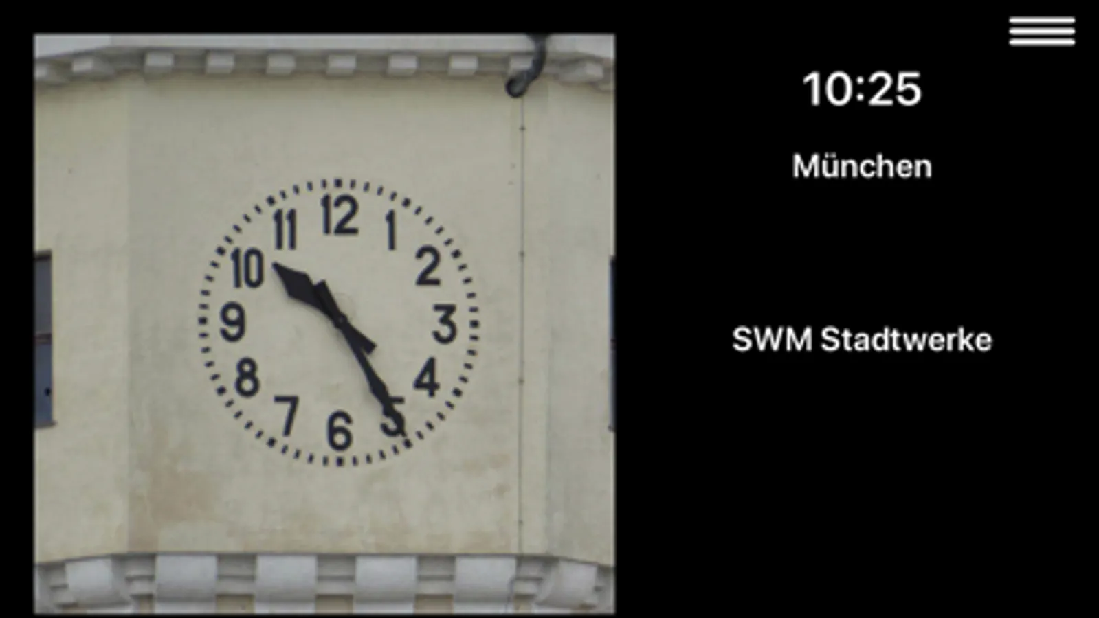 Die aktuelle Uhrzeit wird angezeigt durch eines von 1440 unterschiedlichen Fotos von Uhren aus Bayern. Entstanden aus einem Kunstprojekt zum Thema "Zeit". Dient gleichzeitig zur Dokumentation von besonderen Uhren im Land. Auch zum Upcyclen von veralteten Geräten zur Weiternutzung als Wanduhr.