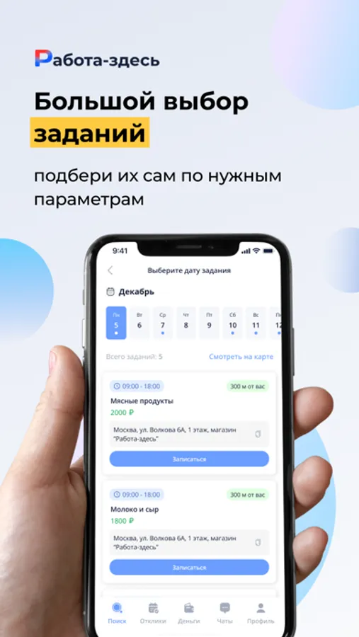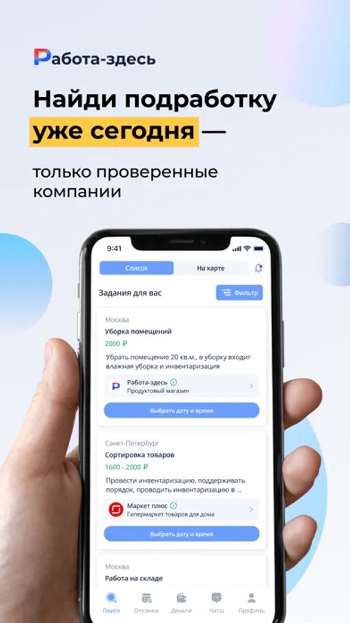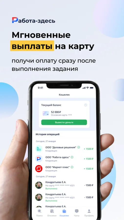 В приложение «Работа-здесь» Вы можете найти подработку с ежедневной оплатой: