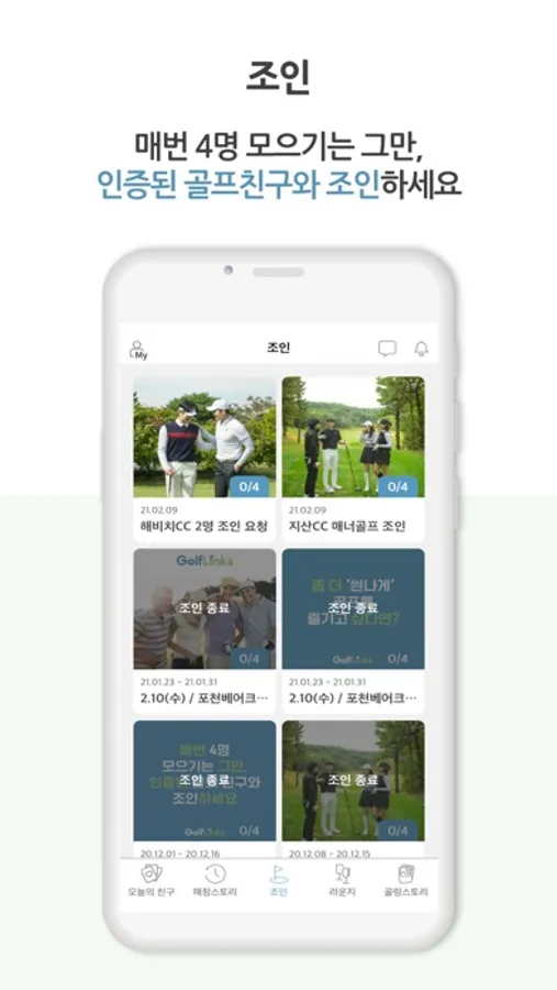 골프링스는 소중한 골프 시간을 골프를 정말 좋아하고, 믿을 수 있는 사람들과 라운드 조인할 수 있는 플랫폼을 지향합니다. 골프링스에서 믿을 수 있는 친구들과 수준 높은 골프 클럽에서 실력까지 쌓아가며 골프를 즐겨보세요!