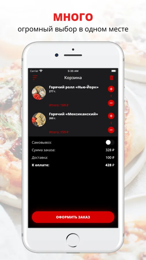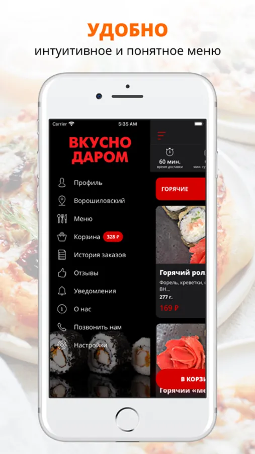 Заказывайте ваши любимые блюда у нас, и Вы останетесь довольны качеством сервиса. У нас работают лучшие повара, а курьеры приятно порадуют вежливостью и быстрой доставкой.
