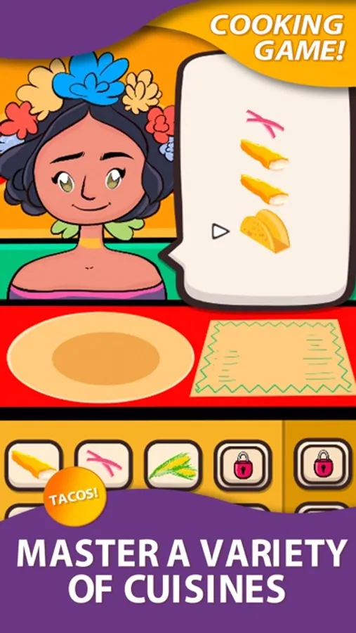 In this chef game, you act as a top chef and star chef. The craze for the cooking grabs you, and you are cooking in brink of madness. You work in the kitchens of different countries and cooking styles, TAP fast to cook various food, serve dishes to customers.