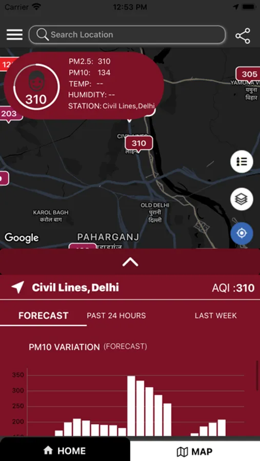 * See the different layers of the maps - stations, traffic, street AQI, and AQI Heatmap