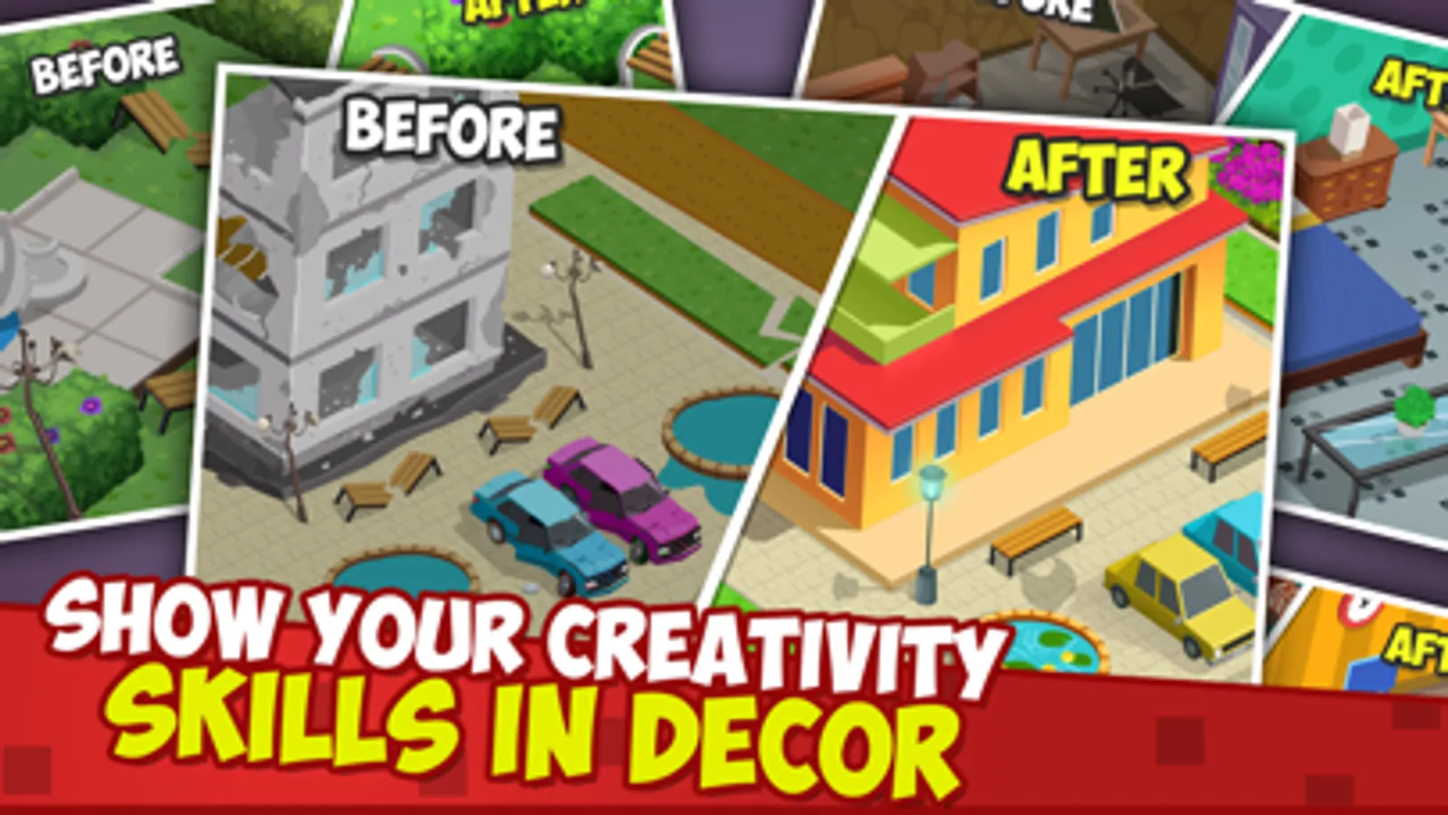 Give the old mansion a complete makeover! Show off your designer skills by furnishing and decorating the kitchen, hall, orangery, garden and other house areas, including the garage! Thousands of design options will give you maximum freedom to explore your creativity, change designs of your dream garden any time you want, and eventually create your dream house!