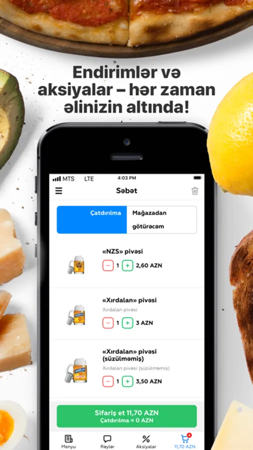 - Sifarişin dəyərini bonus ballarla ödəmək.