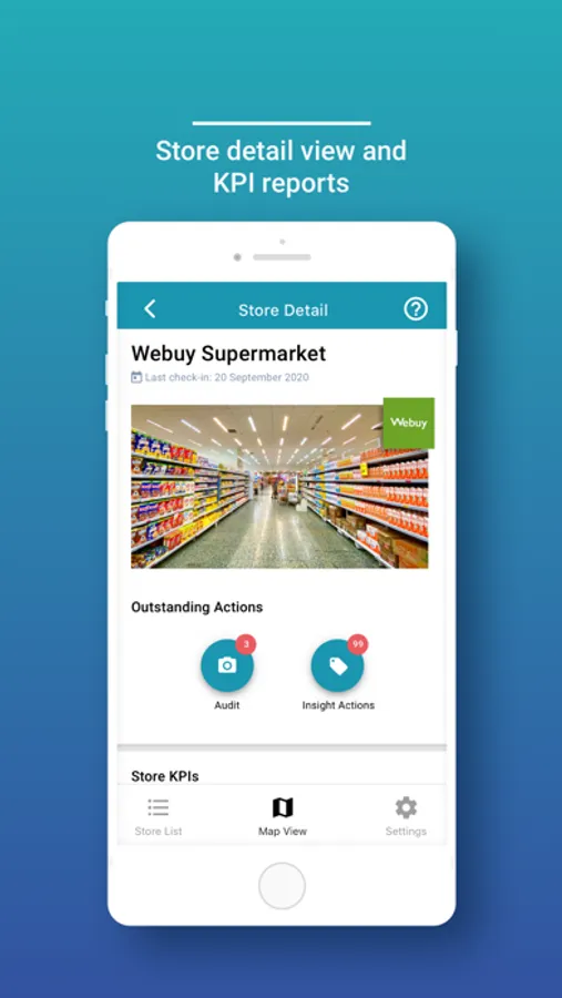 ▸ Toggle between a map and list view of your stores, with issues and suggested actions flagged for attention