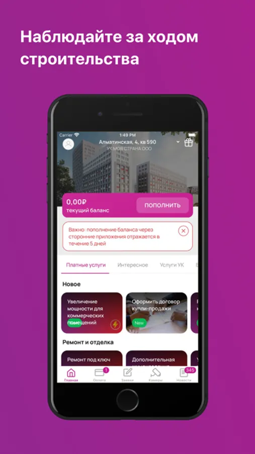 - отслеживайте ход строительства дома и просматривайте фото- / видеоотчеты;