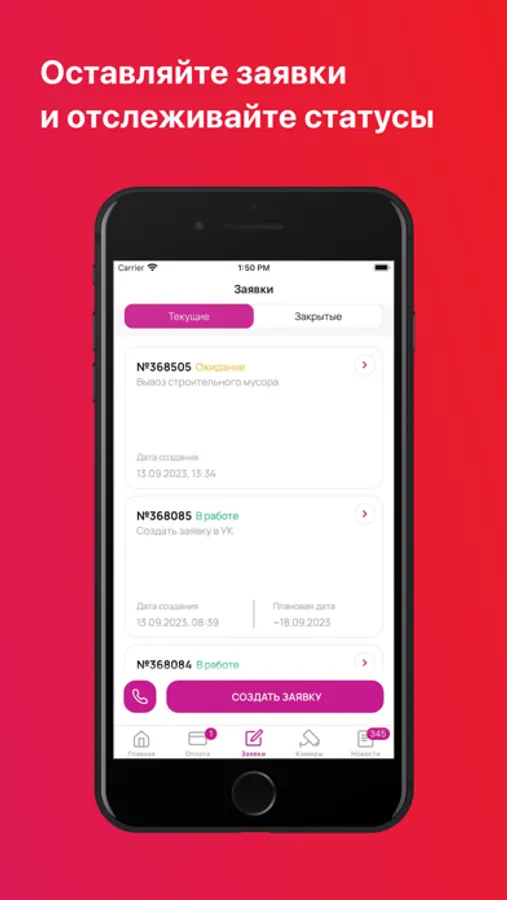 * быстро подавать заявку и отслеживать статус ее выполнения.