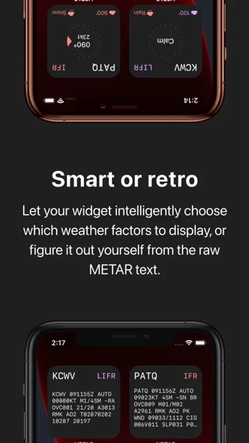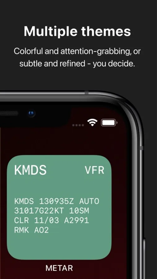 Alternatively, you can use the “Retro” theme to display raw METAR text and practice your interpretation skills (great for exam prep). Protip - put both widget types in a Stack (drag one on top of the other), so you can flip between them!
