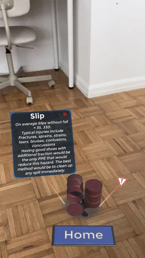 H.A.R.T.S is an Augmented Reality training tool that allows you to view typical workplace hazards through augmented reality while instilling a deeper understanding of how these hazards can be avoided. Focusing on OSHA basics, the H.A.R.T.S app allows you to see Slip, Fall, Trip, and more hazards within AR. With a focus on instilling a deeper understanding of these hazards, Texas Safety Solutions hopes to decrease the overall number of accidents within a workplace.