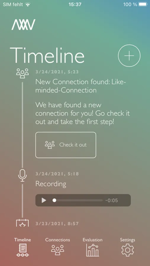 * Track your experiences, moods, goals and desires in your timeline like in a diary and recognize patterns: when are you particularly happy, when are you burdened, what is good for you and what is not.