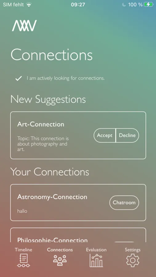 * Your membership starts with a free, non-binding and anonymous interview in which we ask you 18 questions. You answer with a voice recording and then get first insights into your personality.