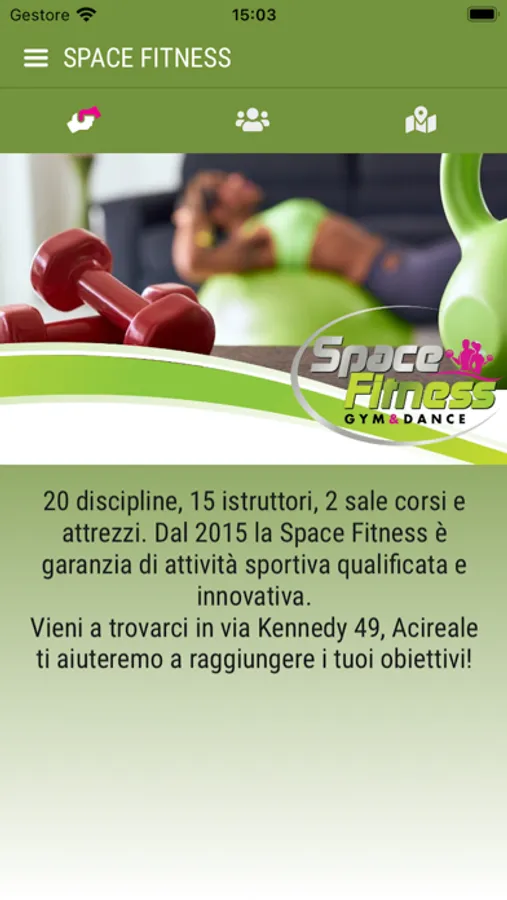 “Space Fitness” è l'innovativa app mobile che mette in comunicazione le strutture sportive con i propri clienti associati.