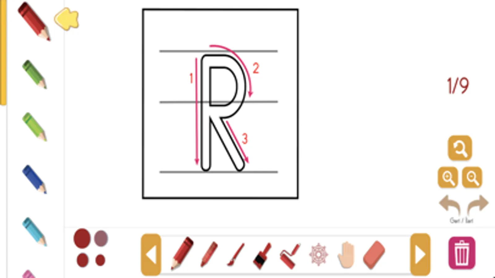 Harfin yazılışı, hissetme, heceleme, cümle okuma çalışmaları ile öğrenmenize yardımcı olacak uygulamamızda isterseniz önce boyama çalışması ve çizgi çalışması yapabilirsiniz.