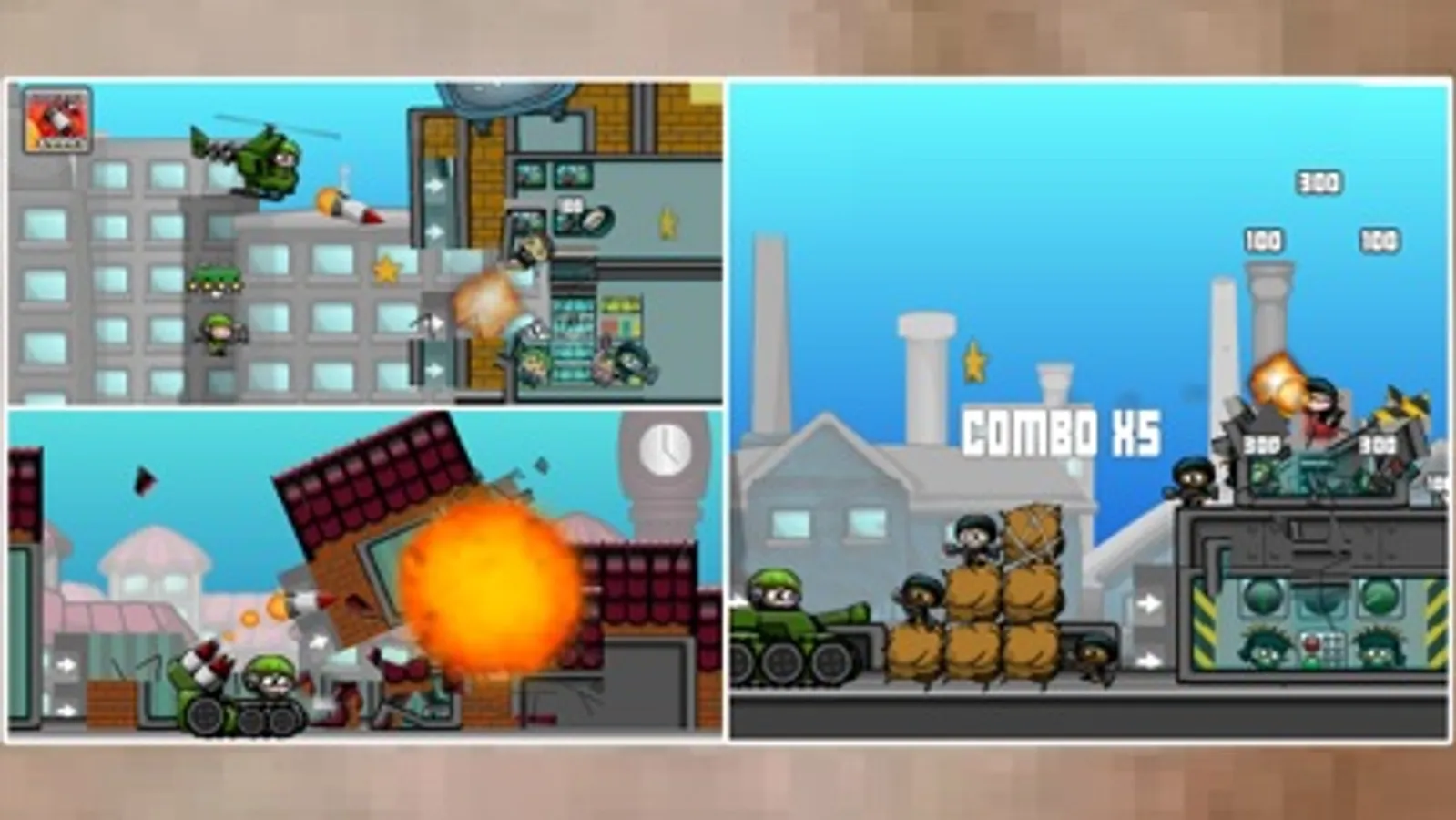 In this addicting arcade platformer you have to free the city from enemy troops. Gather your squad and eliminate the enemy. Destroy the invaders, use the elements of the environment and free the hostages. Be careful and don't let civilians get hurt in battles. Feel the atmosphere of the war zone in this addicting arcade adventure.
