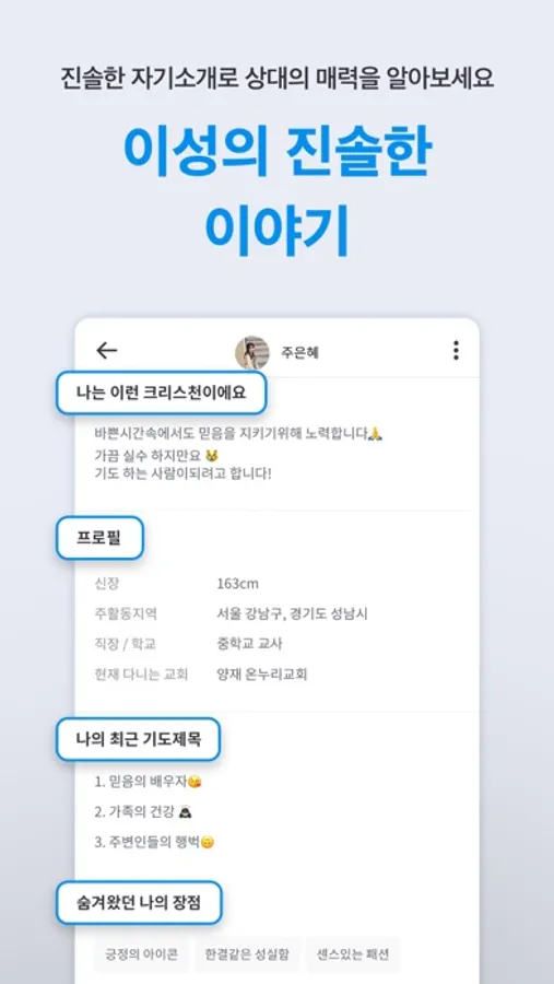 크리스천의 연애는 기존 소개팅어플과는 다른 크리스천들을 위한 만남 어플입니다.