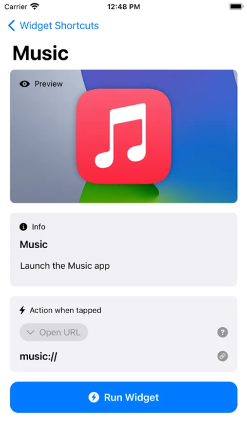- Launch and run any Shortcut made in the Shortcuts app through a Widget.