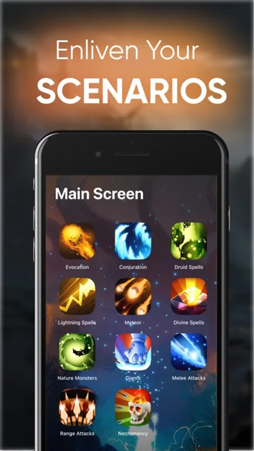 • Roll your own dice and swiftly play the appropriate sound scenario OR use the in-app auto dice roller