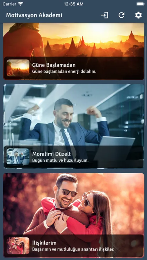 Motivasyon akademi aplikasyonu kendi içindeki bölümler olan, güne başlamadan ile güne daha motive olarak hazırlanmanızı, moralimi yükselt bölümüyle kendi içi enerjinizi yükseltip, self motivasyon becerilerinizi geliştirebilirsiniz. İlişkiler bölümünde hem iletişiminizi hem de karşı cinsle olan ilişkilerinizi nasıl daha verimli bir hale getirebileceğiniz konusunda bilgiler alabilir, bunlarla ilgili hazırlanan meditasyon ve meditasi bölümleri ile de bilinçaltınıza olumlu mesajlar gönderebilirsiniz.