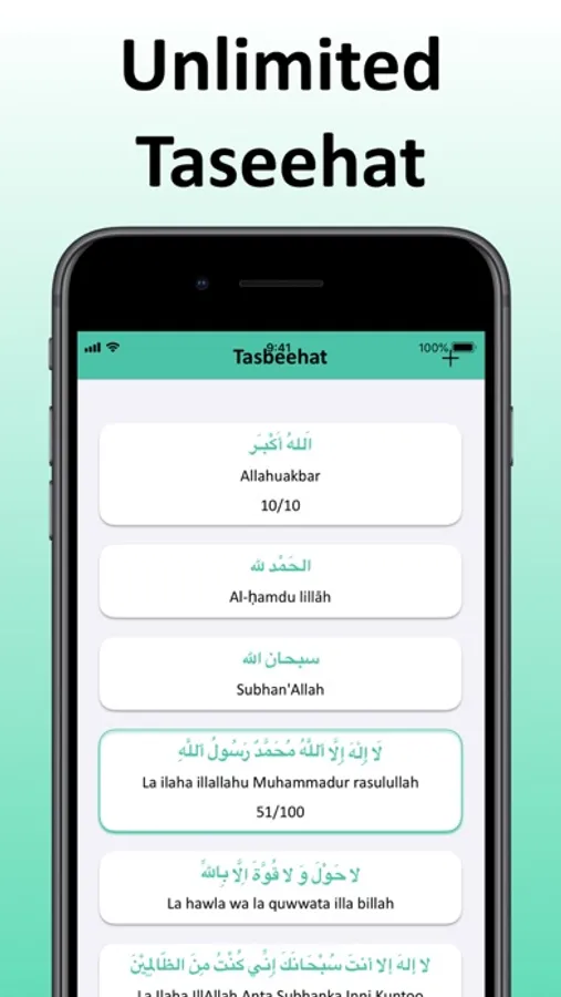 • Unlimited Tasbeehat: Perform as many Tasbeehs as you like.