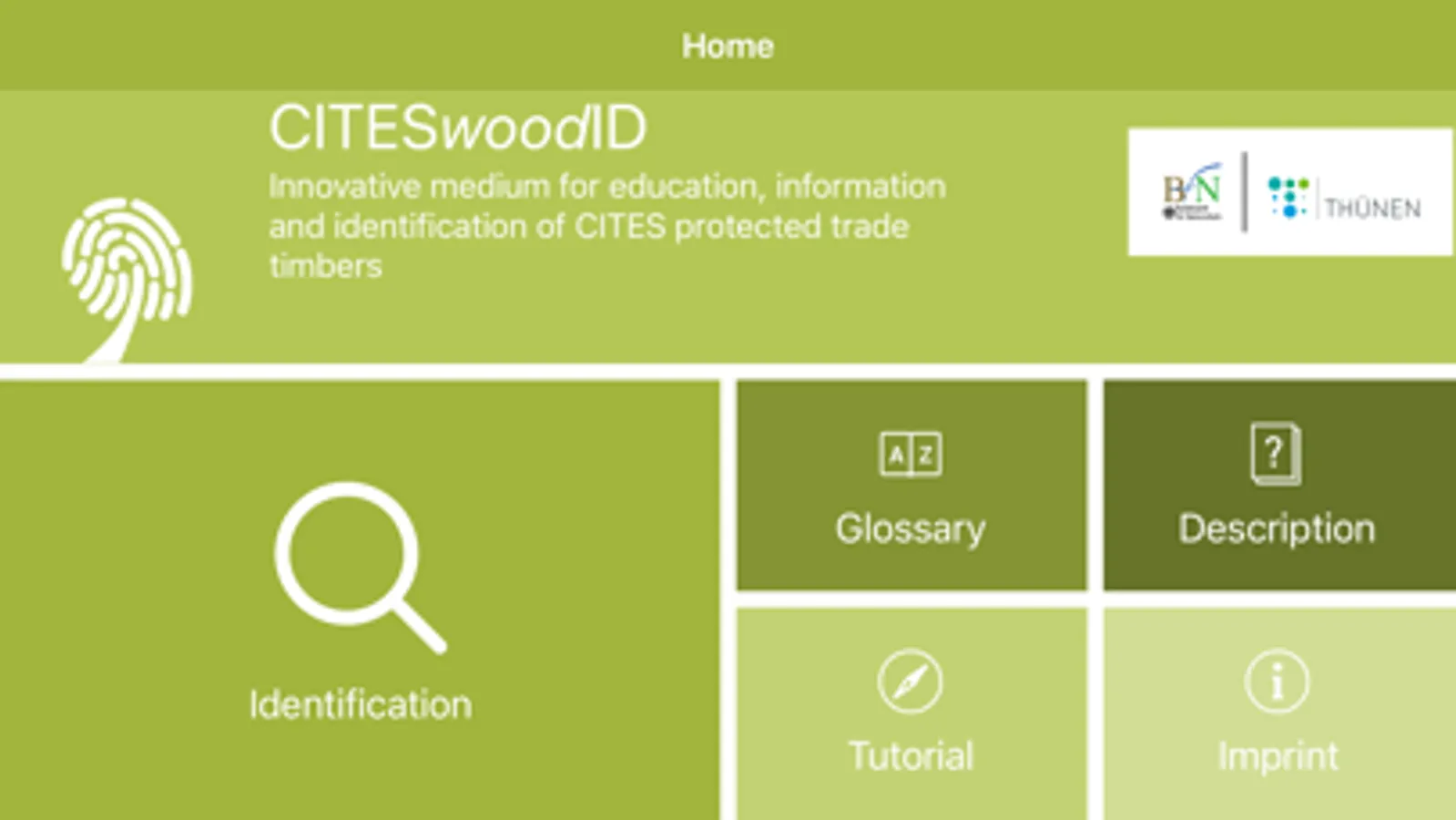 The ability to identify CITES-protected wood species is of prime importance in the implementation and enforcement of the CITES controls. A valuable new support for computer-aided wood identification based on macroscopic features is provided by the development of App versions of the database CITESwoodID. The database and application software for mobile systems contain descriptions and an interactive identification system for 46 trade relevant CITES-listed timbers (e.g., ebony, mahogany, rosewood) known for their use as lumber and downstream processing into products. In addition, the database covers 34 traded timbers which can be mistaken for CITES taxa due to a very similar appearance and/or structural pattern. The database and App are designed primarily for all institutions and individuals involved in controlling the import and export of wood and wood products which are regulated by CITES. It is also of use to educational facilities active in teaching wood anatomy and wood identification.