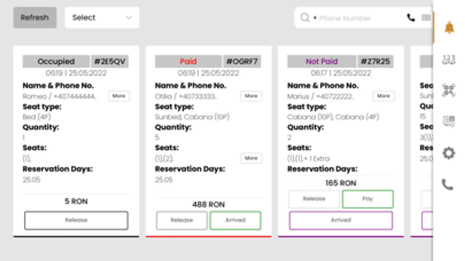 You can zoom in and out on the map and if you tap on a specific chaise-longue or a table on your seat map, the whole ‚story’ reveals! Who made the reservation, the phone number, for what day, hour, how many people, for how long and other details. Be sure to check if the customer has some comments :blush:Of course, you can also book and occupy tables in the platform, if you opted for the premium package.