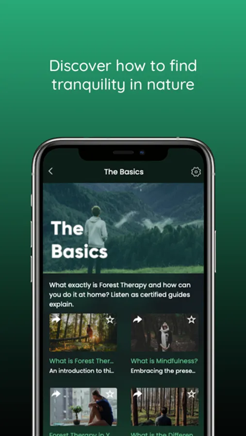 Forest Therapy has evolved to become a therapeutic practice that combines nature immersion with a broad range of mindfulness techniques. Research has proven that Forest Therapy can help decrease stress, boost your immune system and improve your overall mental health. TreeQuility’s introductory sessions explain the brief history and origins of Forest Therapy. The app will give you the tools to create your own practice.