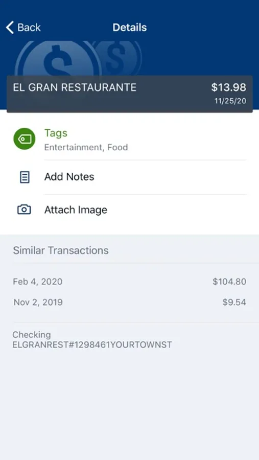 - Keep your transactions organized by allowing you to add tags, notes and photos of receipts and checks.
