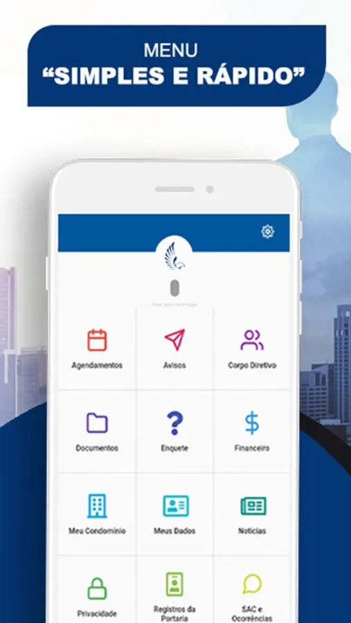 Após o download e instalação no seu smartphone, faça a conexão utilizando seus dados de Login e Senha do portal do seu condomínio (consulte sua administração caso tenha necessidade) e navegue pelo menu principal através dos recursos disponíveis.