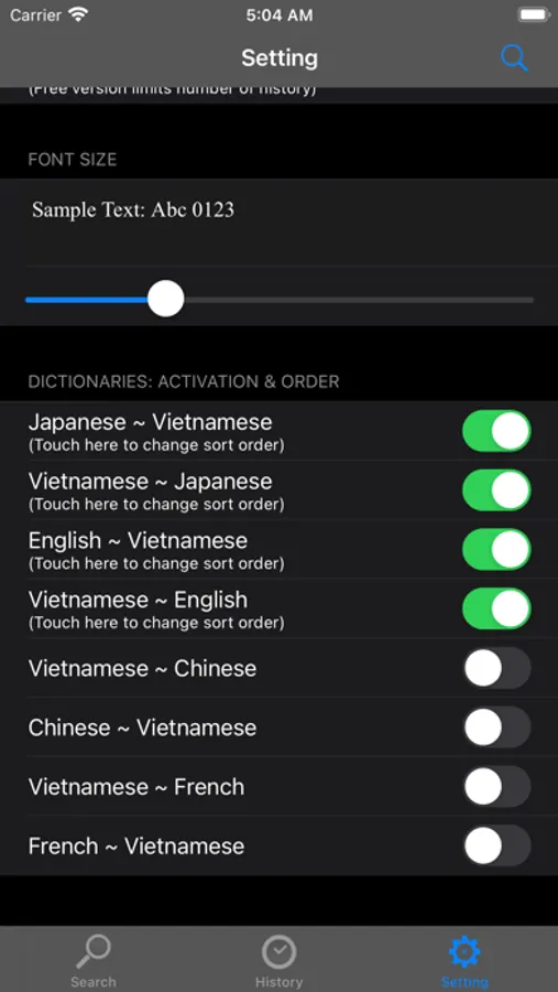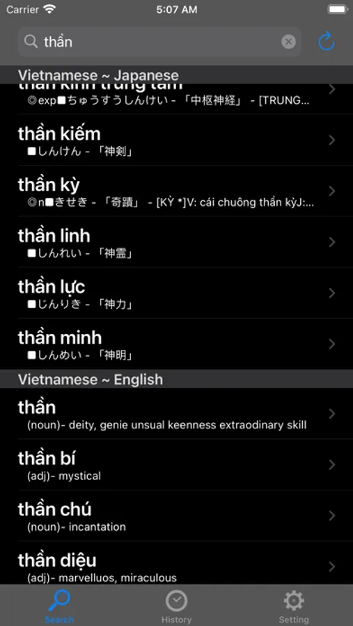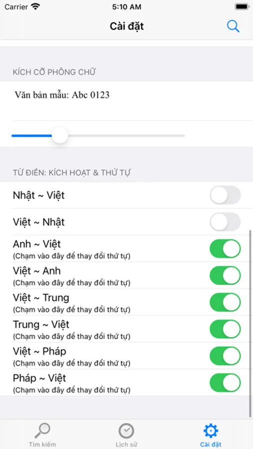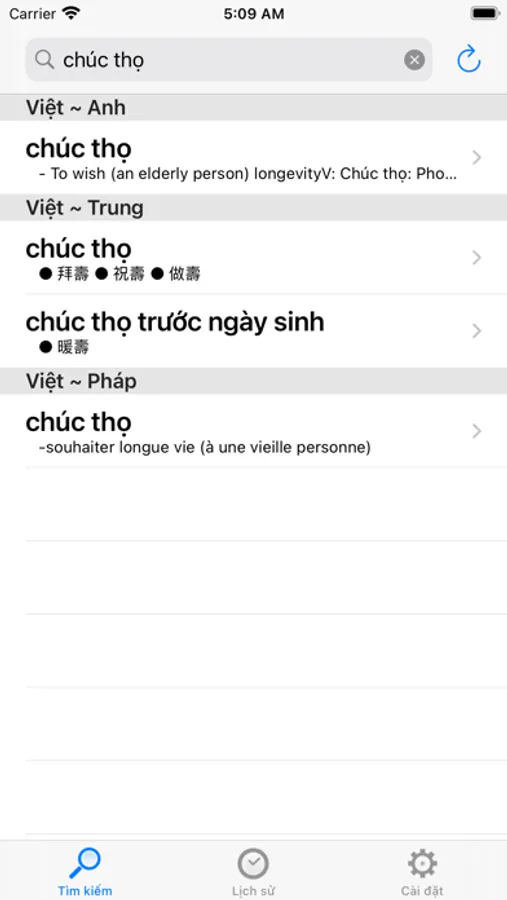 Ứng dụng có chứa các từ điển sau (có thể dùng đồng thời):