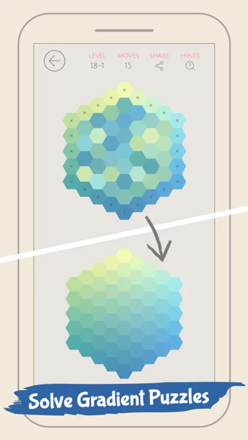 You can play alone, or share your elegant and beautiful hue puzzles with your friends.