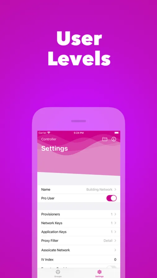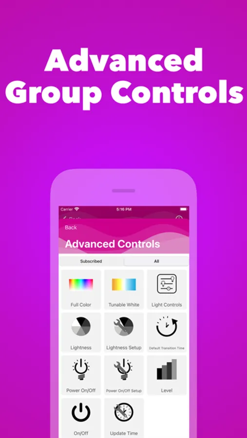 The Zaniboni Control App provides a simple user interface to commission Bluetooth Mesh Devices. The app also gives the user the ability to easily configure and control all their mesh devices