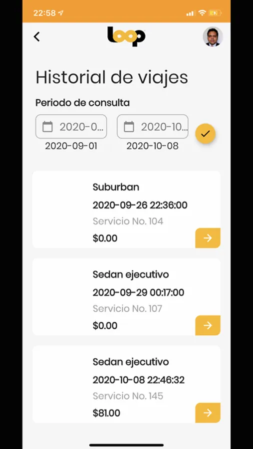 Dentro de la aplicación Loop encontrarás diversas funcionalidades para tener un control en tiempo real de los servicios que has operado en el pasado, así como tu programación de servicios futuros.