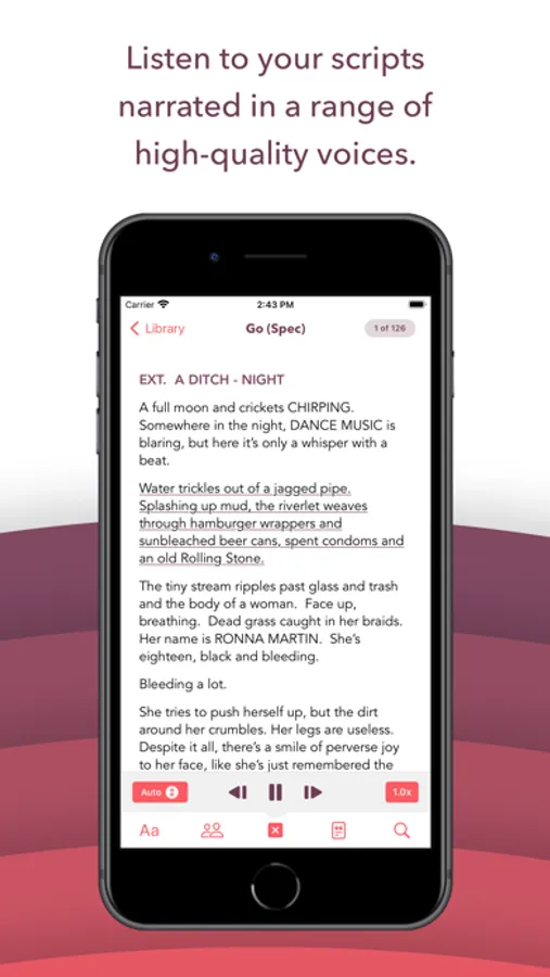 Weekend Read 2 makes reading screenplays delightful, optimizing scripts for the iPhone and iPad retina screen. Never squint and pinch to read a script again.