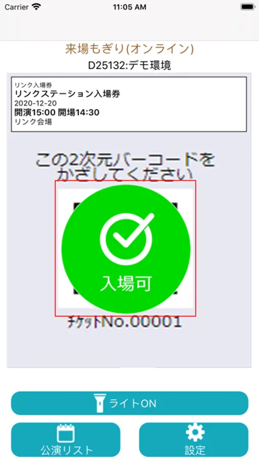 QRコードの読み取り及びチェック機能により、入場を許可します。