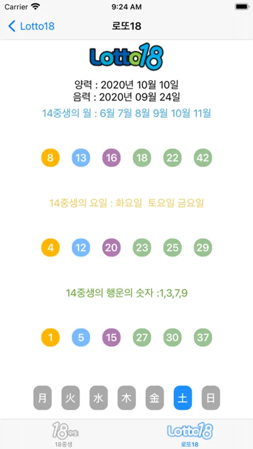 프리미엄 버전은 각 요일별 로또번호를 한번에 확인 할 수 있습니다.