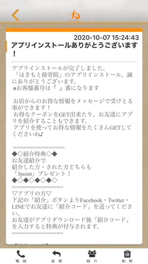 ほきもとのアプリをSNSを通じてお友達に紹介する事ができます。