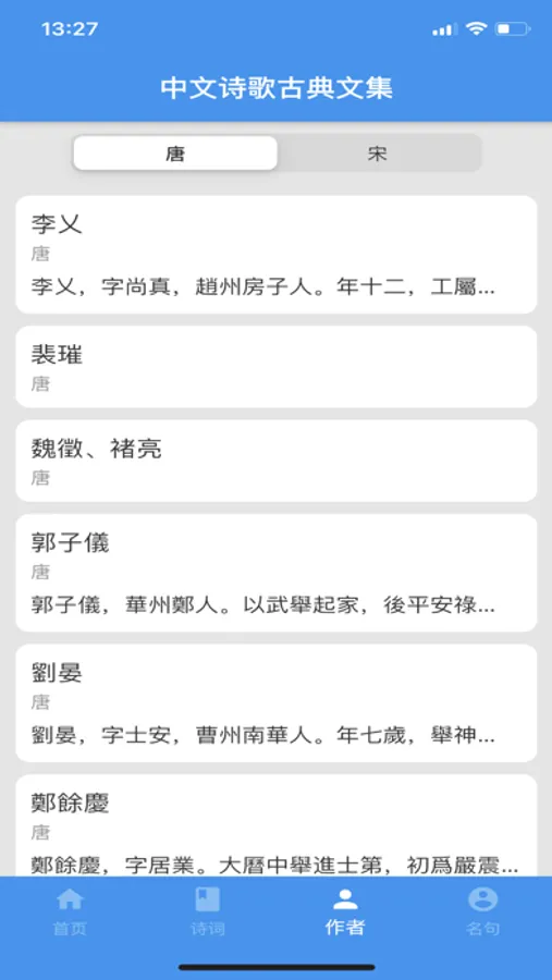 《古典文集》是一款古文诗词 App。内容涵盖了唐诗、宋词、宋诗等。