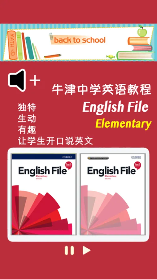 English File 4th Edition,适用于中学,本应用配套Elementary级别。
