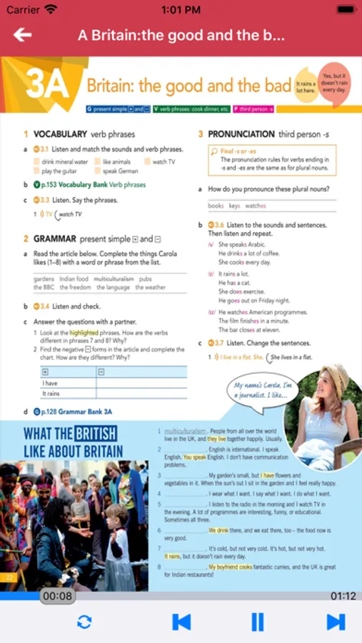 * 每个偶数单元加入了视听活动,比如纪录片或戏剧片段,使课堂气氛更活跃;