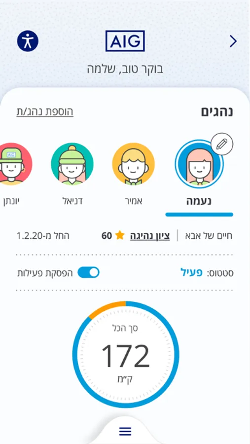 האפליקציה כוללת מסכים יעודיים לנהג הצעיר, שבהם הוא יוכל להפעיל ולכבות את חבילת הקילומטרים כאשר הוא נוהג ברכב המבוטח.