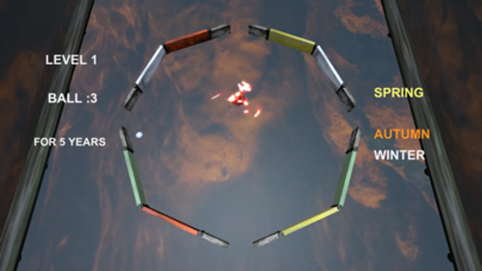 When the years reach 10, a magic column appears. If a ball touches it, the ball goes into another dimension where you challenge a trial.