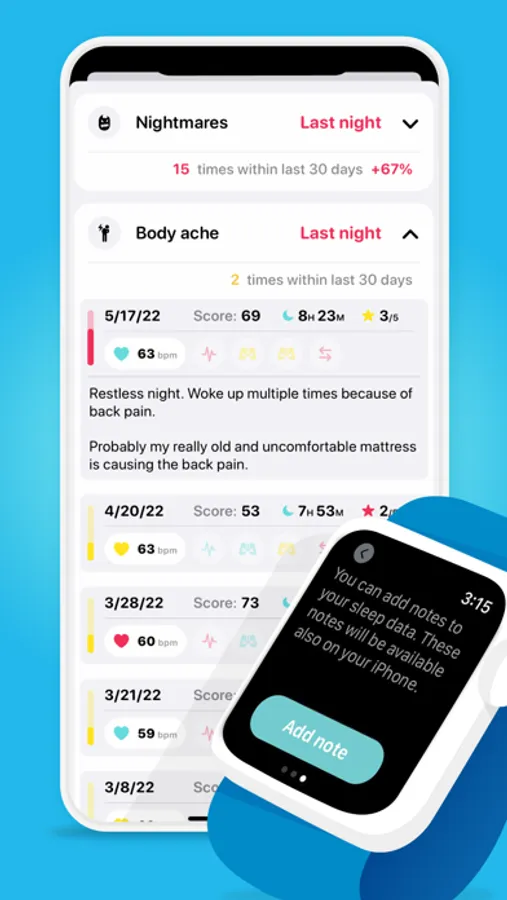-Tag your sleep with factors that possibly affected your sleep. For example if you feel that caffeine affected your sleep you can tap the caffeine icon to tag your sleep