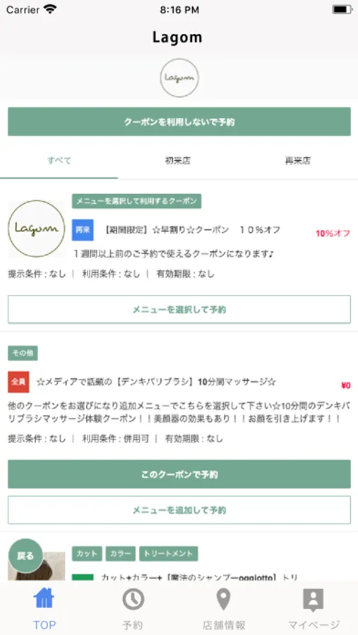 お得なクーポンが配信されます。ネット予約時にクーポン利用での予約も可能なので来店時もスムーズに施術頂けます。
