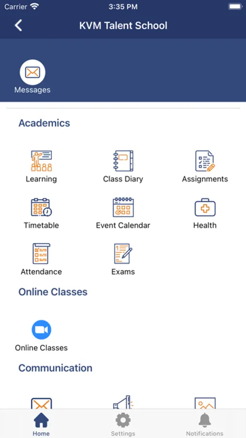KVM School provides communication app for parents using which they can download school announcements, Class assignments, can see attendance and activity.