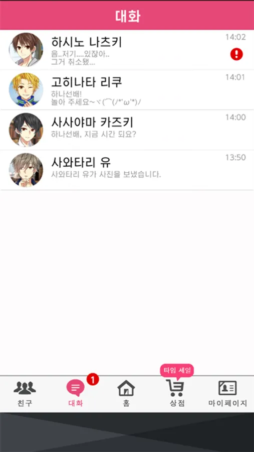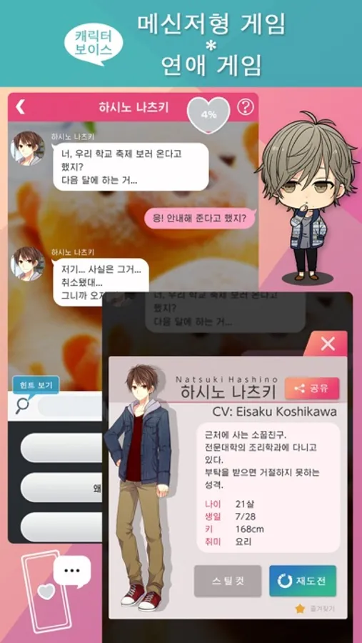 개성 넘치는 남자들과 메시지를 주고받는 연애 게임!