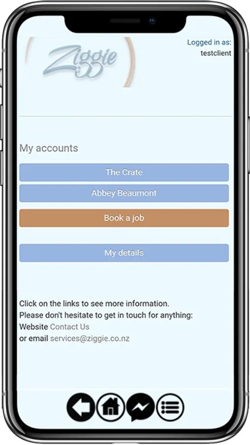 This app is still in its infancy and provides a simple to use calendar showing all jobs scheduled with Ziggie. The client can also get in touch with us to for rebookings, changes, queries or questions.