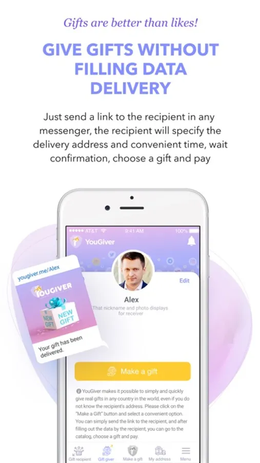 If you want to make a gift, start you dialogue in a unique way and send a link to confirm the gift. If anyone wants to make you a gift, don’t reveal your personal information, just send your link.