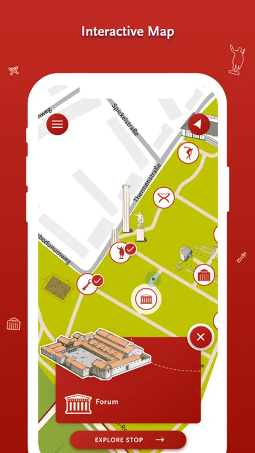With the app as your digital companion, the Archaeological Park Cambodunum comes alive: 360° videos take you on a virtual journey through time - into the oldest German city expliclity mentioned in writing. At more the 15 historic sites, scenes from everyday Roman life in the year 100 AD can be experienced up close.